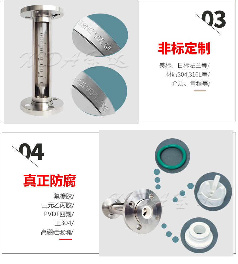 1. 优势:本款流量计采用外形整体304,内部是由氟橡胶,PVDF和高硼硅玻璃组成的。既美观又实用。