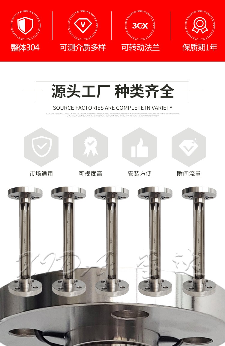 2.性能:此款法兰连接玻璃转子流量计的工作压力可达1.0MPa。法兰为可活动法兰,可以方便快捷的安装于管道上。
