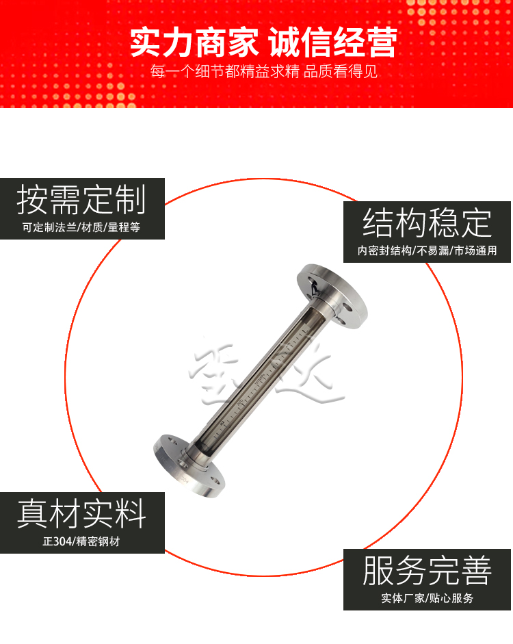 1. 优势:本款流量计采用外形整体304,内部是由氟橡胶,PVDF和高硼硅玻璃组成的。既美观又实用。