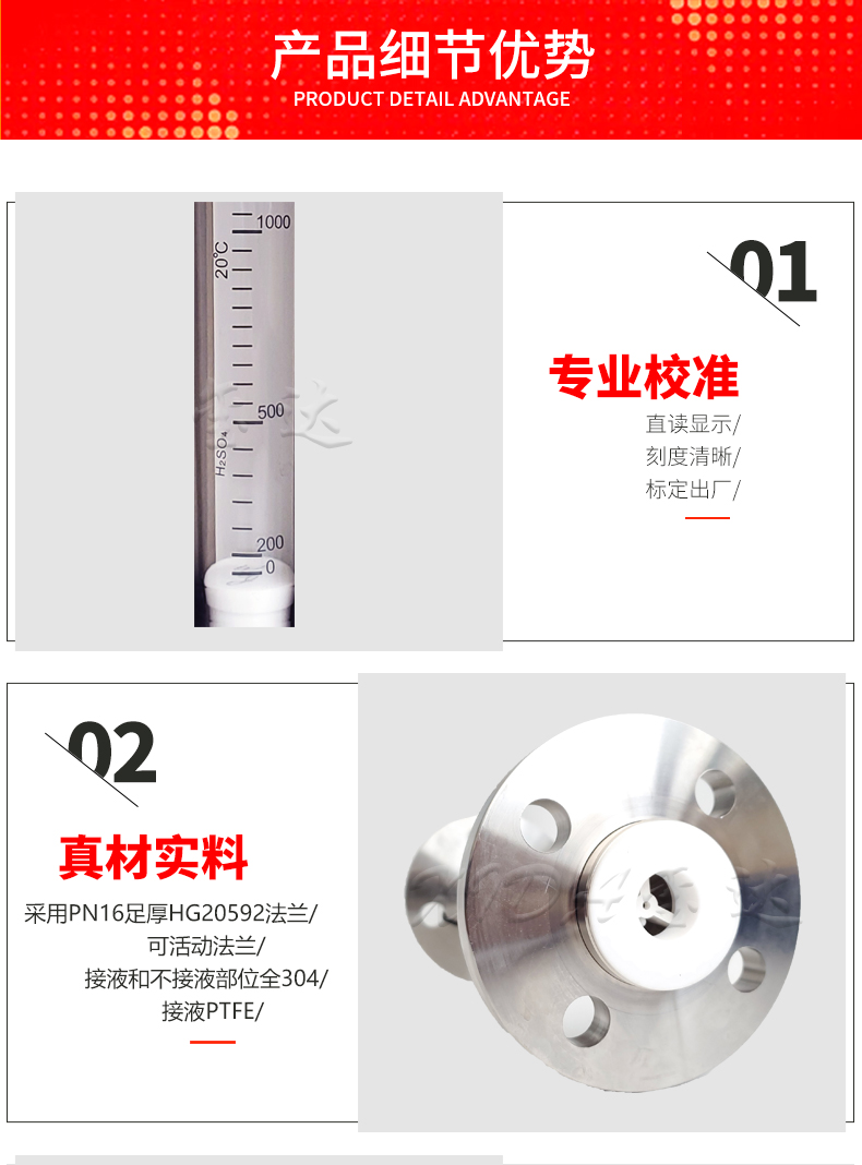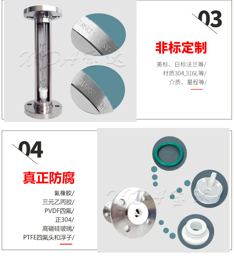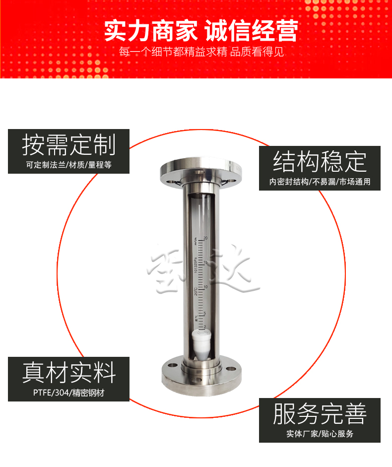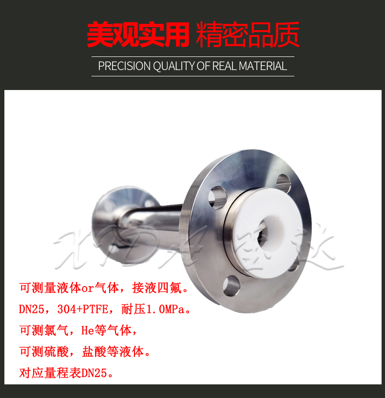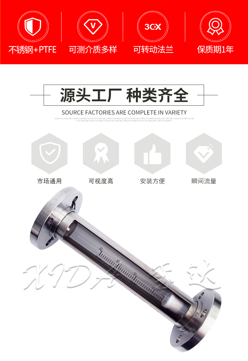 1. 优势:本款流量计采用外形整体304,内部是由PTFE,氟橡胶,PVDF和高硼硅玻璃组成的。既美观又实用。