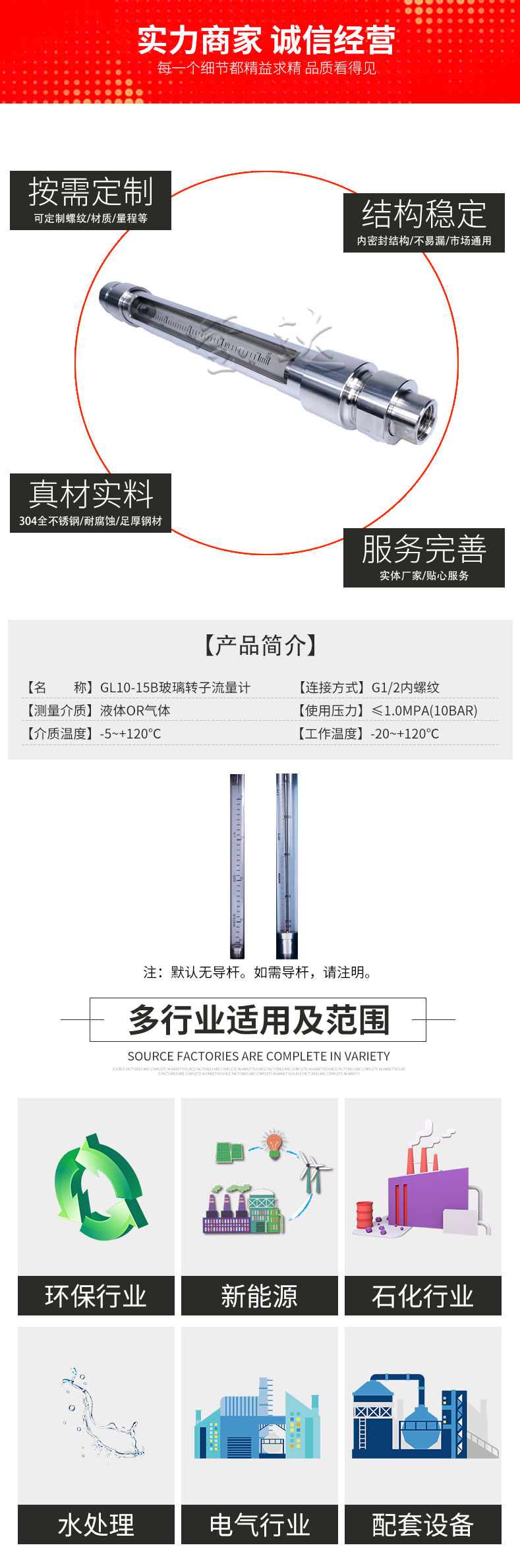 GL10-15B玻璃转子流量计是一款通过浮子变化测量量程,可测量有腐蚀的气体or液体的流量计。
