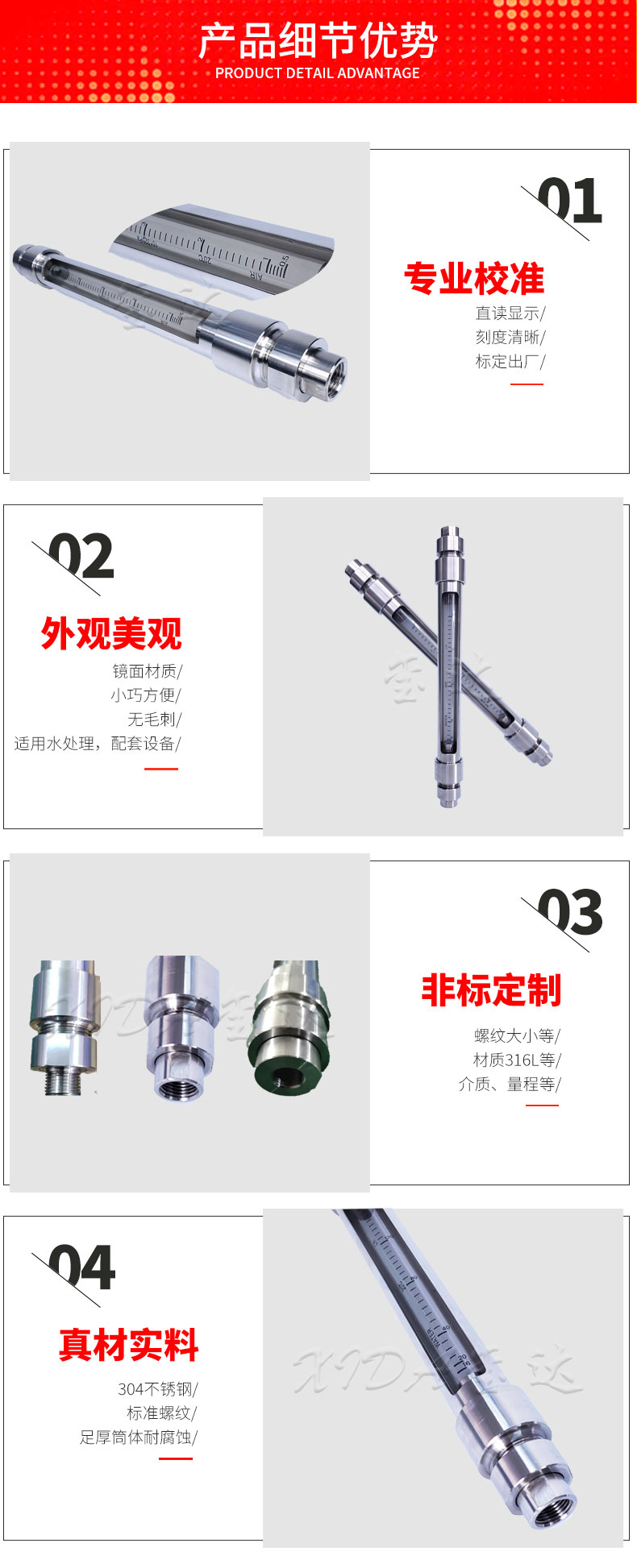 1.优点:本款流量计光面外观,刻度清晰,耐腐蚀,内密封结构,标定出厂,一件起售。