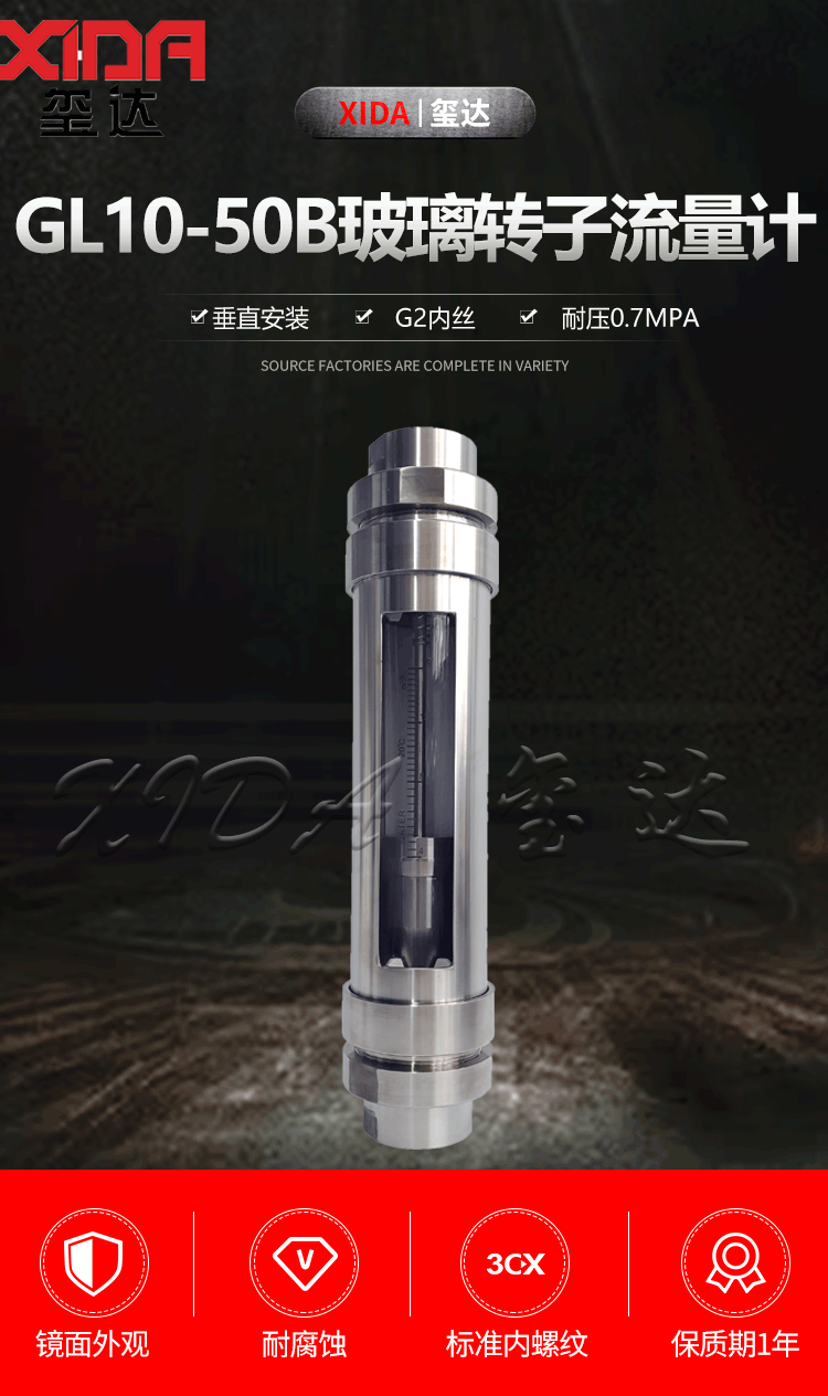 GL10-50B螺纹不锈钢玻璃转子流量计是玺达仪表生产销售的一款耐腐蚀,耐高压,耐高温,一件起售的气体液体转子流量计。玺达仪表生产销售的流量计适用于环保设备,化工企业,石油企业,电气行业等。本公司更有多种机械设备,满足客户非标定制。玺达仪表致力于把控品质,满足需求,让客户能够无忧购买。本公司作为生产厂家,拥有标定设备以确保准确度。。江苏玺达仪表有限公司为您提供贴心服务。了解更多,服务更多。