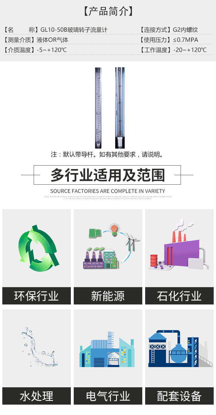 GL10-50B螺纹不锈钢玻璃转子流量计测液体气体是一款采用直读显示,垂直螺纹全不锈钢玻璃转子流量计。