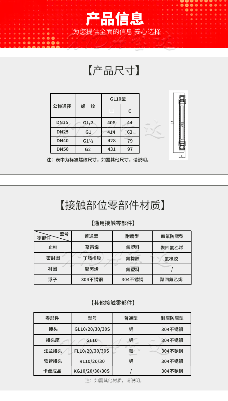 ①接受定制定做:其他螺纹尺寸(NPT,G或外螺纹等)