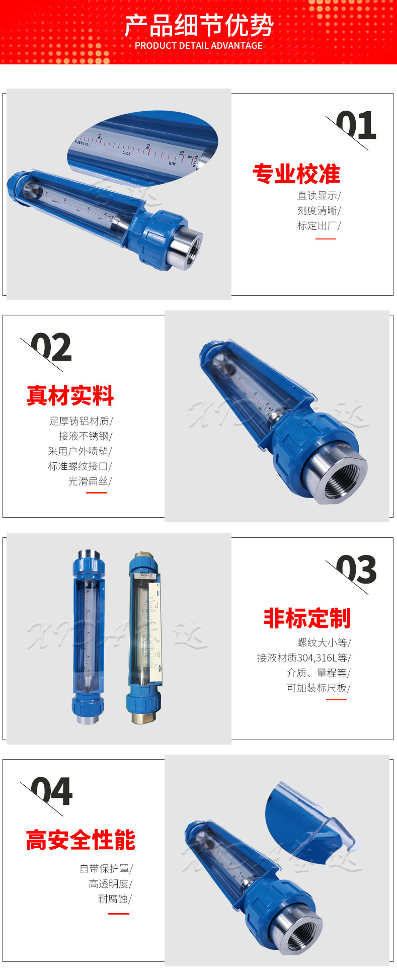 1.优势:自带保护罩,可加装标尺板。刻度清晰,外形美观,标定出厂,市场通用。