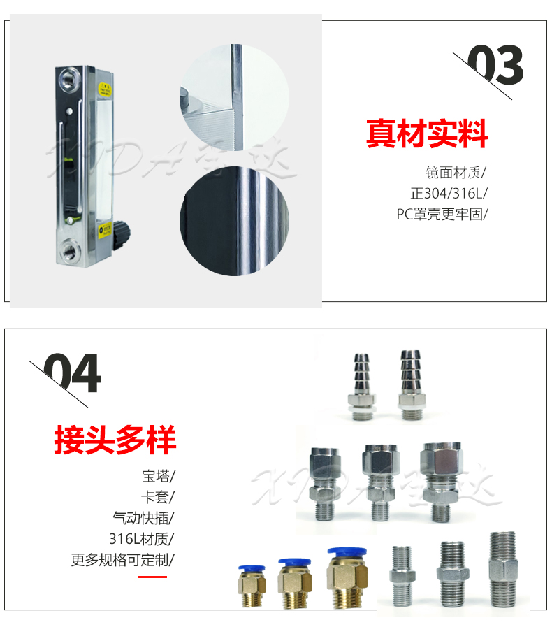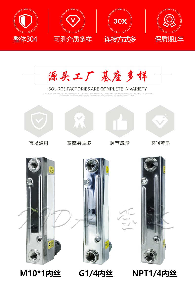 1.优势:外形采用整体304材质。测量微小流量。小巧美观。连接方式多样。