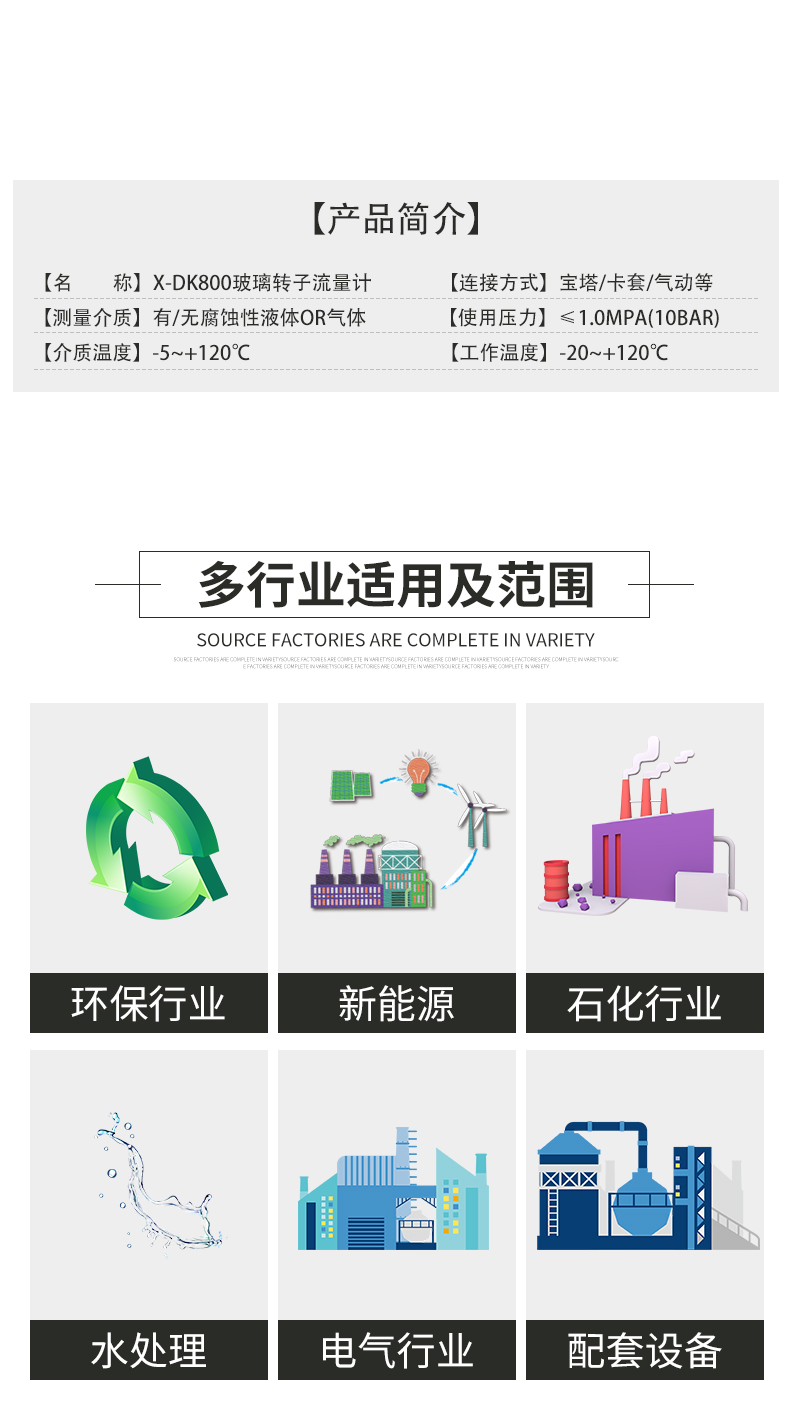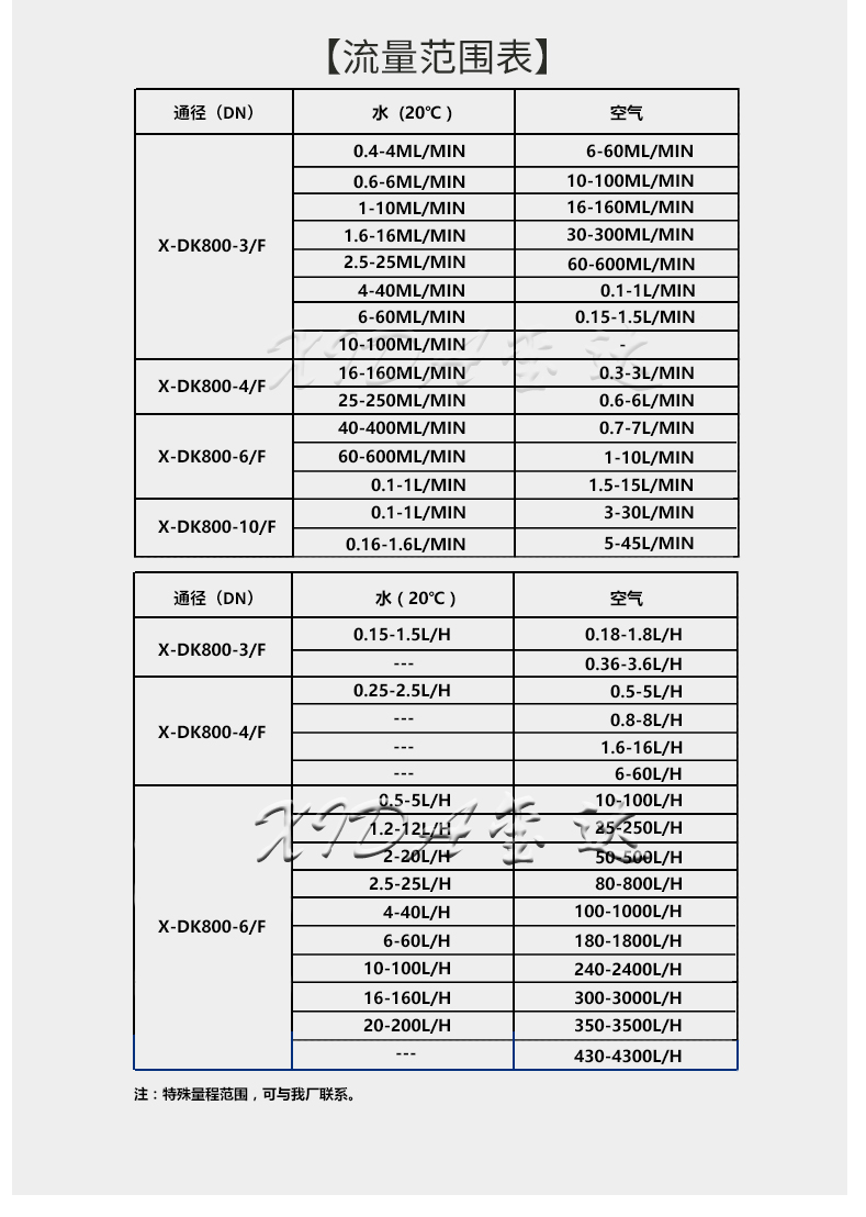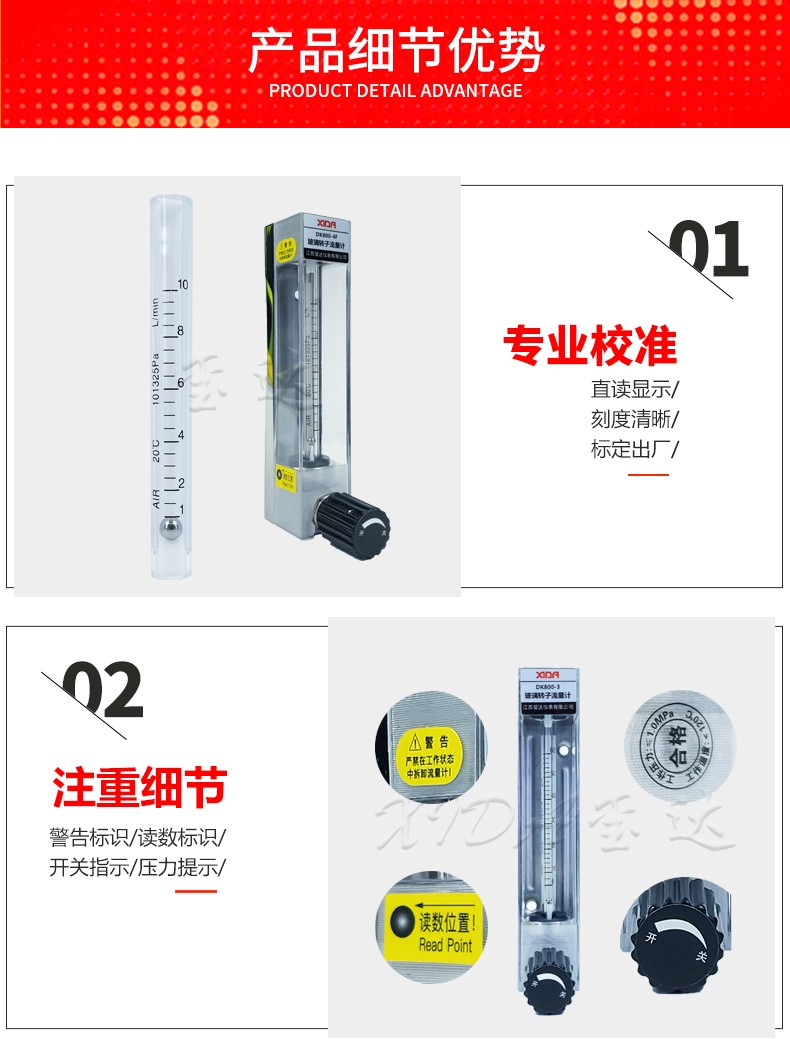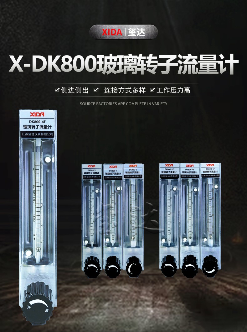 X-DK800玻璃转子流量计主要作用于瞬间流量的测量。可另外制作成面板式,报警型,法兰连接型等。是一款可以测量腐蚀性气体或酸碱性液体微小流量计。