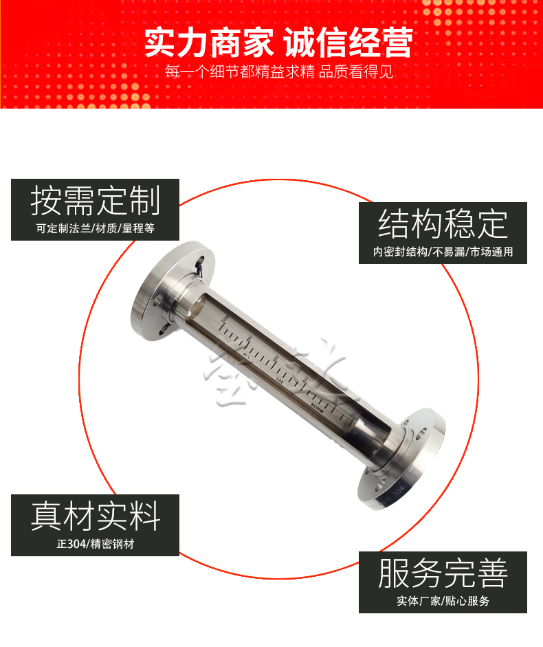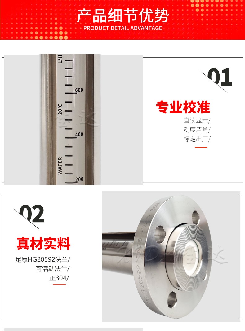 1. 优势:本款流量计采用外形整体304,内部是由氟橡胶,PVDF和高硼硅玻璃组成的。既美观又实用。