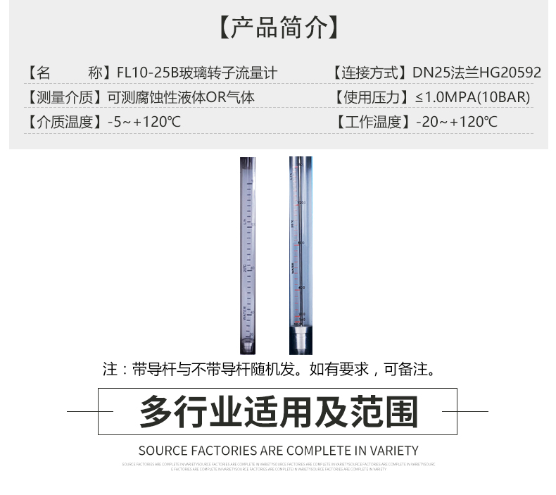 5. 延伸:FL10-25B玻璃转子流量计是一款测量氨水流量计。连接方式还有其它选择:螺纹连接,软管连接,卡盘连接。